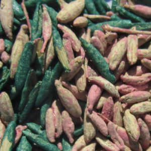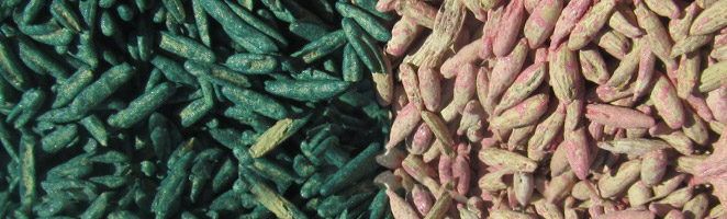 Encrusting is the technique of adding a small amount of material to a seed to enable accurate mechanical seed metering. Growers who are primarily concerned with reducing double or multiples rather than consistent seed spacing often choose to encrust there seeds. Entrustment is most often used on crops that benefit from seed simulation but don’t require post emergence thinning. Encrusted seed can be used in green house or out on the field. This addition of material changes the minimally shape of the raw seed.